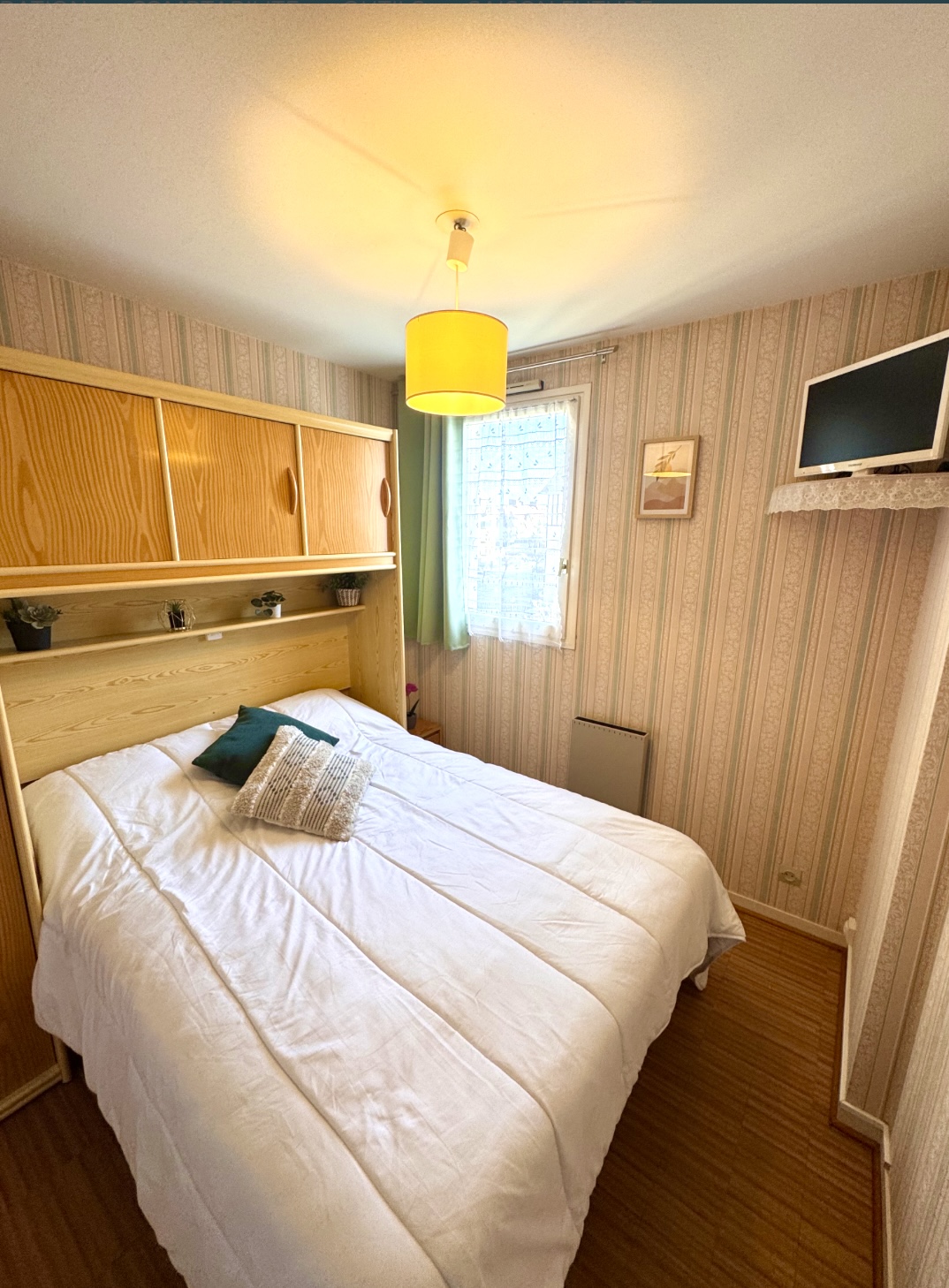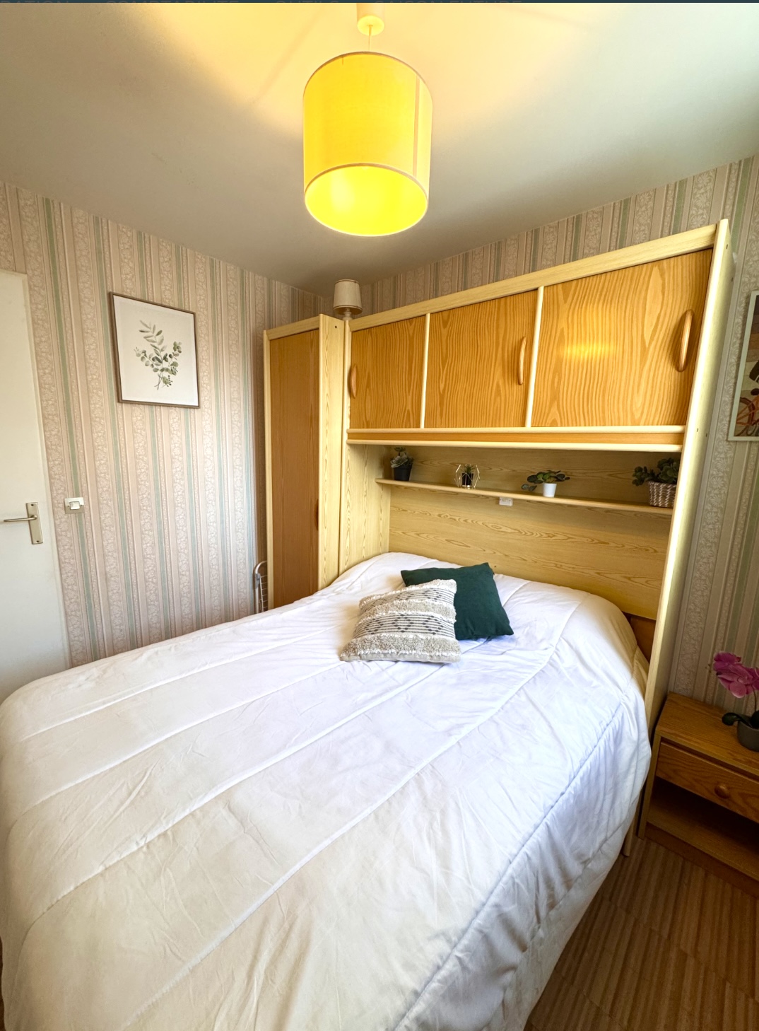 une chambre avec lit double (140) et rangements