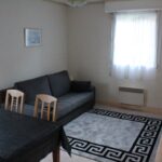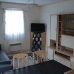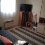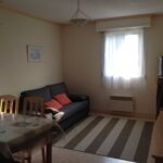 un séjour avec clic clac pour le couchage, télévision connectée, accès wifi et coin repas.