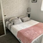 Une chambre avec lit double (140) et télévision.