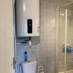 Une salle de douches avec wc.